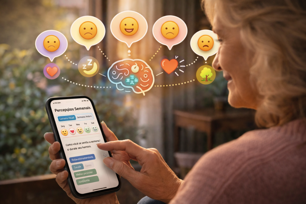 A página de Percepções Semanais é um espaço simples para transformar a semana em aprendizado: identificar gatilhos, reconhecer sinais de sobrecarga e registrar o que realmente funciona para recuperar equilíbrio